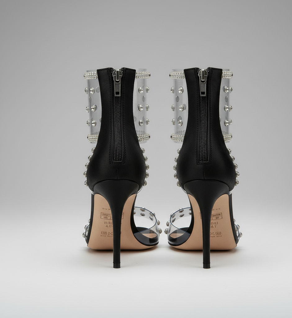 Where sleek elegance meets striking sophistication. These ankle stilettos are designed to elevate your look with their modern design and stunning silhouette, making them a must-have for any fashion-forward wardrobe.